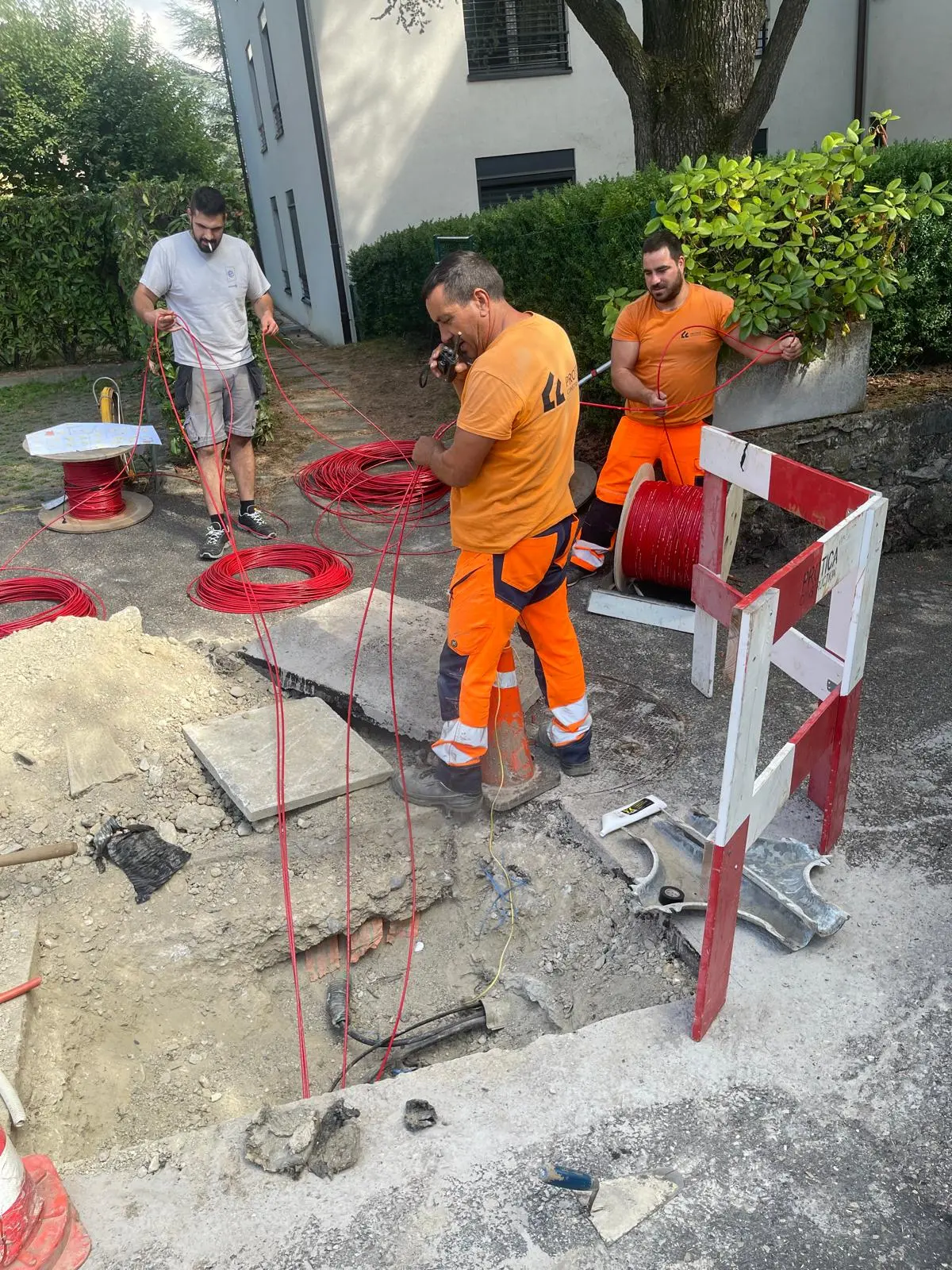 Réalisation de tranchées, pose de gaines et réhabilitation des infrastructures existantes pour accueillir la fibre optique.